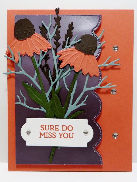 As I mentioned on Friday, I cleaned out my die cutting drawer in my studio and came across an old embossing mat and thought that I would give it a go. Wowzers...it really gave some extra embossing effects to my Cone Flowers and Leaves. You can even see the little dots in the Flower Centers. I sure hope Stampin' Up! comes out with their embossing mat soon!