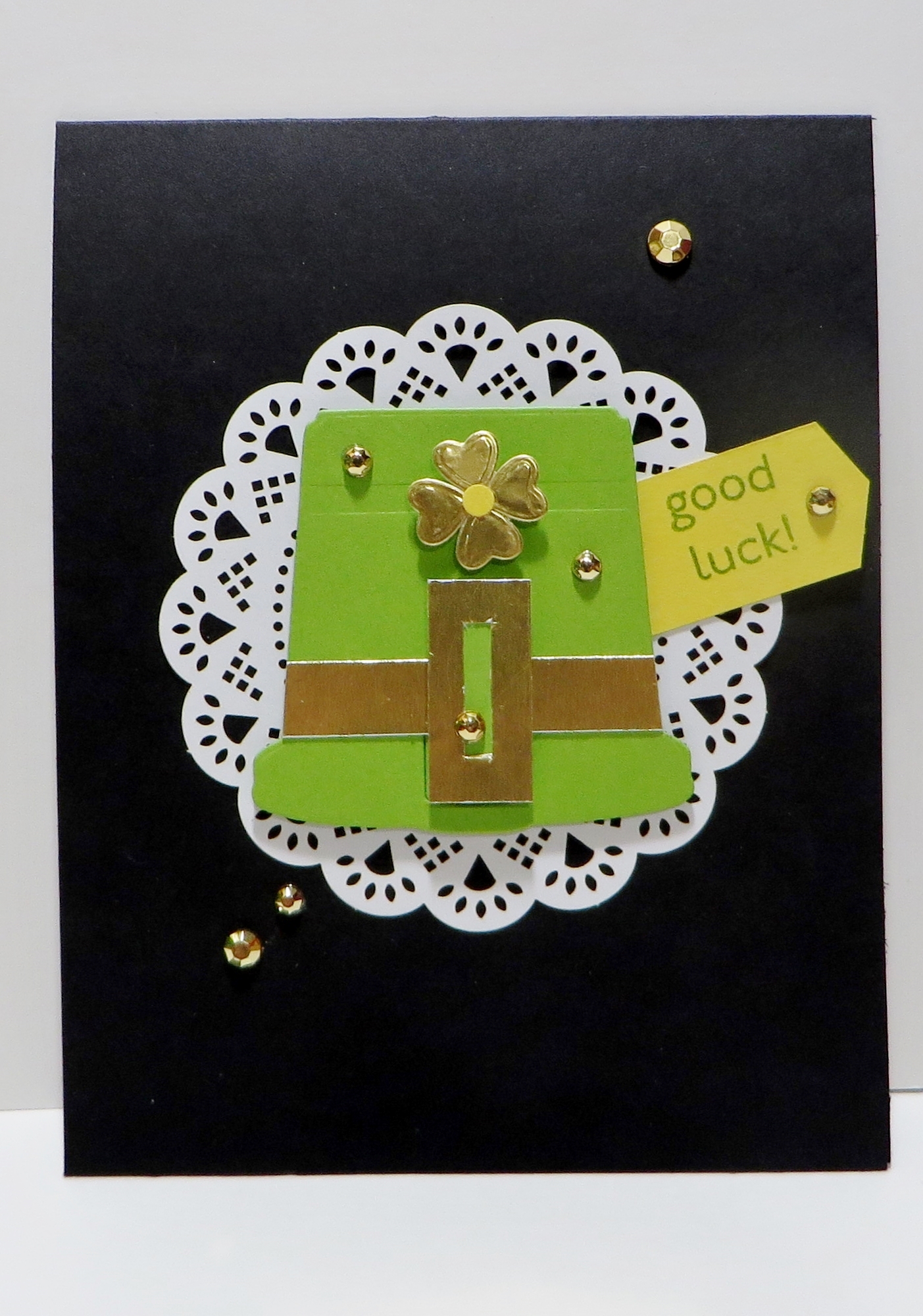 Using the Art Gallery Stamp Set, I stamped the words 'good' and 'luck' in Granny Apple Green Ink onto a strip of Daffodil Delight Cardstock.