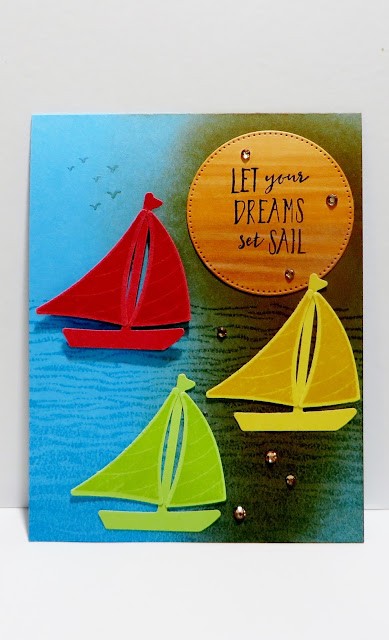 I adhered my stamped Sails to the Cardstock Boats leaving the rest of the Cardstock Sails for another project.
