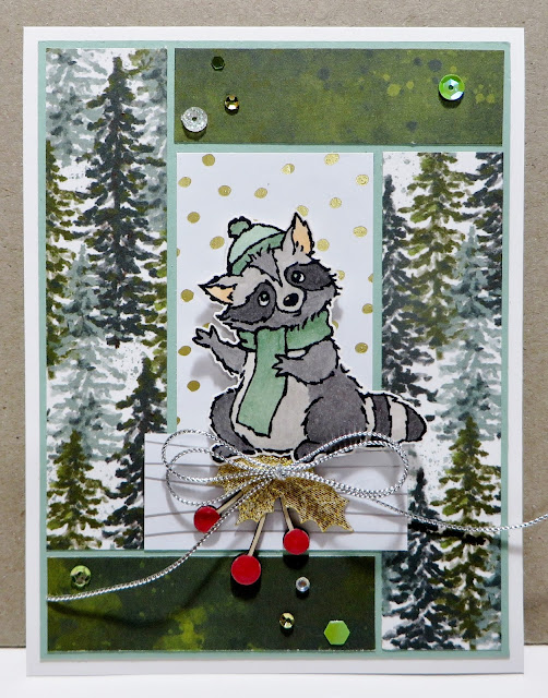 The Center Panel and the Grounding for my Raccoon are from the Silver & Gold 6" x 6" Designer Series Paper that is a Free Sale-a-Bration product.